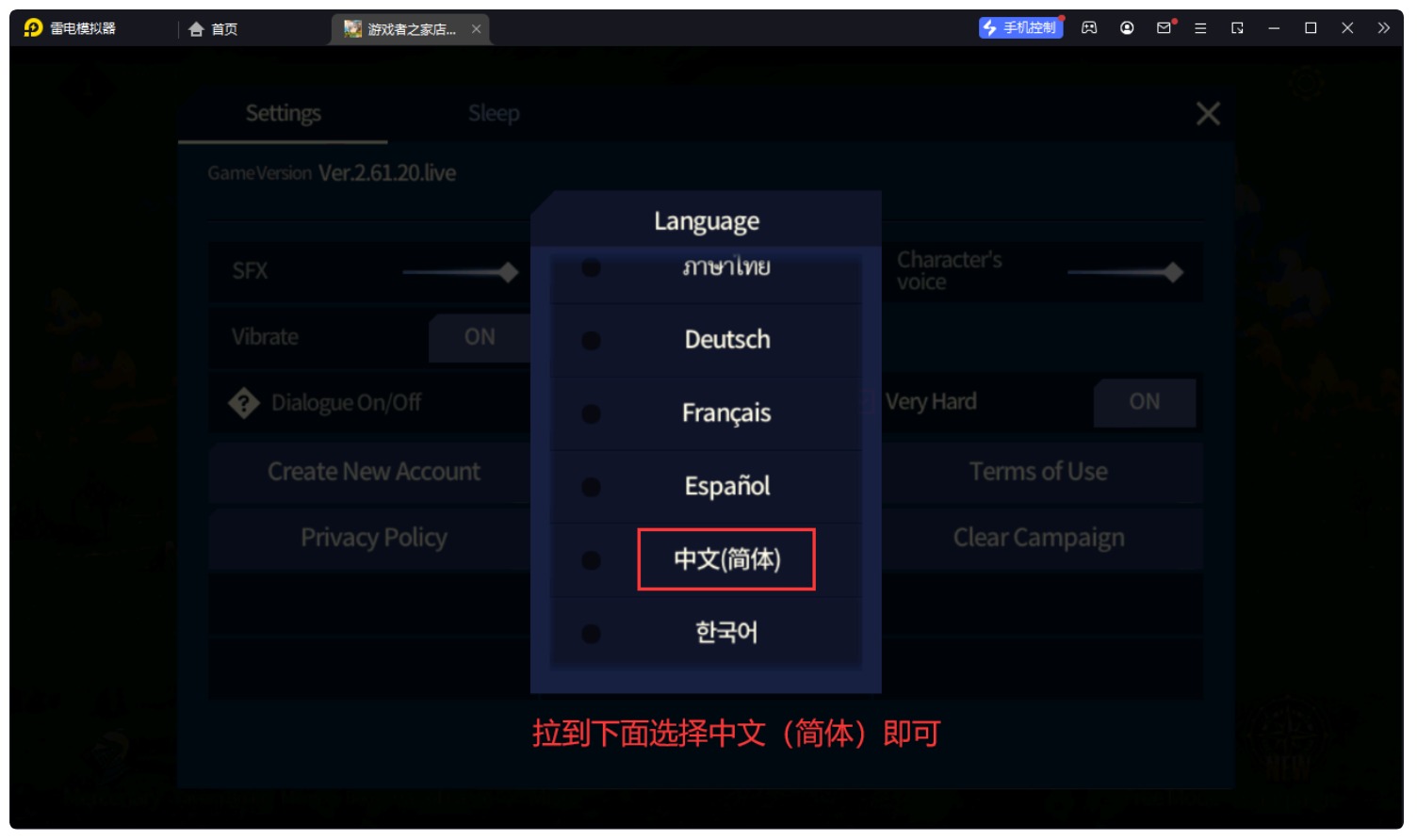 选择中文(简体)以后按OK即可,会自动重新进游戏,进游戏后就是中文了